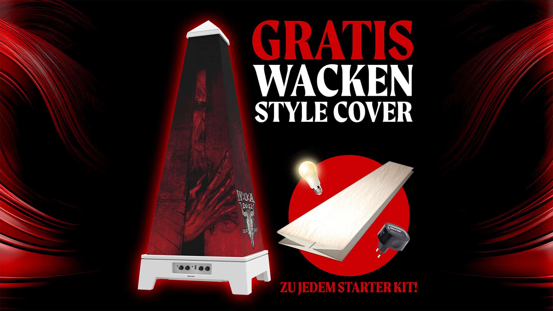 Für eine begrenzte Zeit schenken wir Dir zu jedem XOUNTS Starter Paket das exklusive Wacken Style Cover ‘Zombie’. Diese Aktion gilt nur bis zum 10.08.2024.